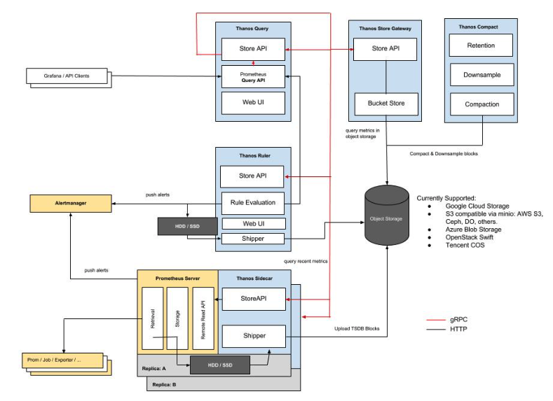 타노스는 여러 프로메테우스 서버로부터 metric을 수집하여 통합된 쿼리를 할 수 있는 환경을 제공하고, Amazon S3와 같은 object 스토리지에 데이터를 백업 저장하여 안정성을 높입니다.