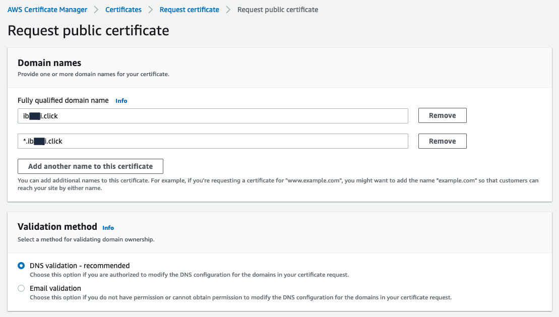 미리 구입한 도메인에 대해서 ACM을 생성하겠습니다.