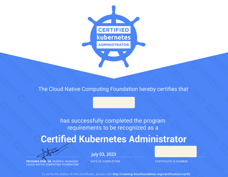 지난 7월 2일 CKA 시험에 응시했고, 자격증을 취득했습니다. 🎉