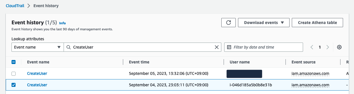CloudTrail에서도 바로 검색이 가능해서 CloudTrail에서 검색을 해보겠습니다.