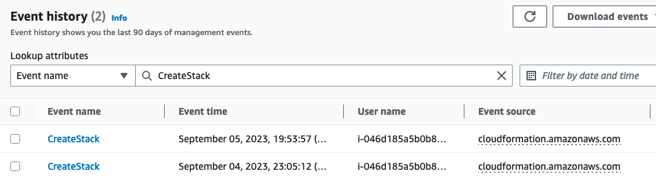 CreateStack으로 검색하면, Simulation Part 3에서 시도한 로그를 확인할 수 있습니다.