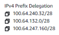 AWS 콘솔에서 Node ENI에 아래와 같이 /28 IP CIDR이 할당된 것을 볼 수 있습니다.